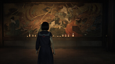 The "alternate world" in SHF is very different from what we're used to seeing in the previous Silent Hill games. There are no rusty bars, mutilated corpses, or any other infernal stuff here. Instead, the alternate world now resembles a large and beautiful Japanese temple.