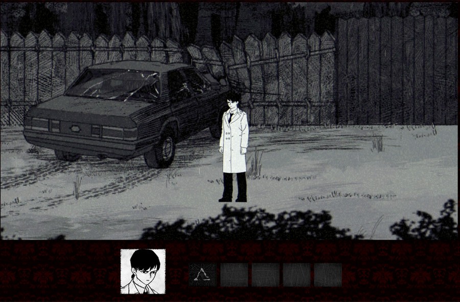 Двухмерный чёрно-белый квест с видом сбоку, наподобие Cat Lady.